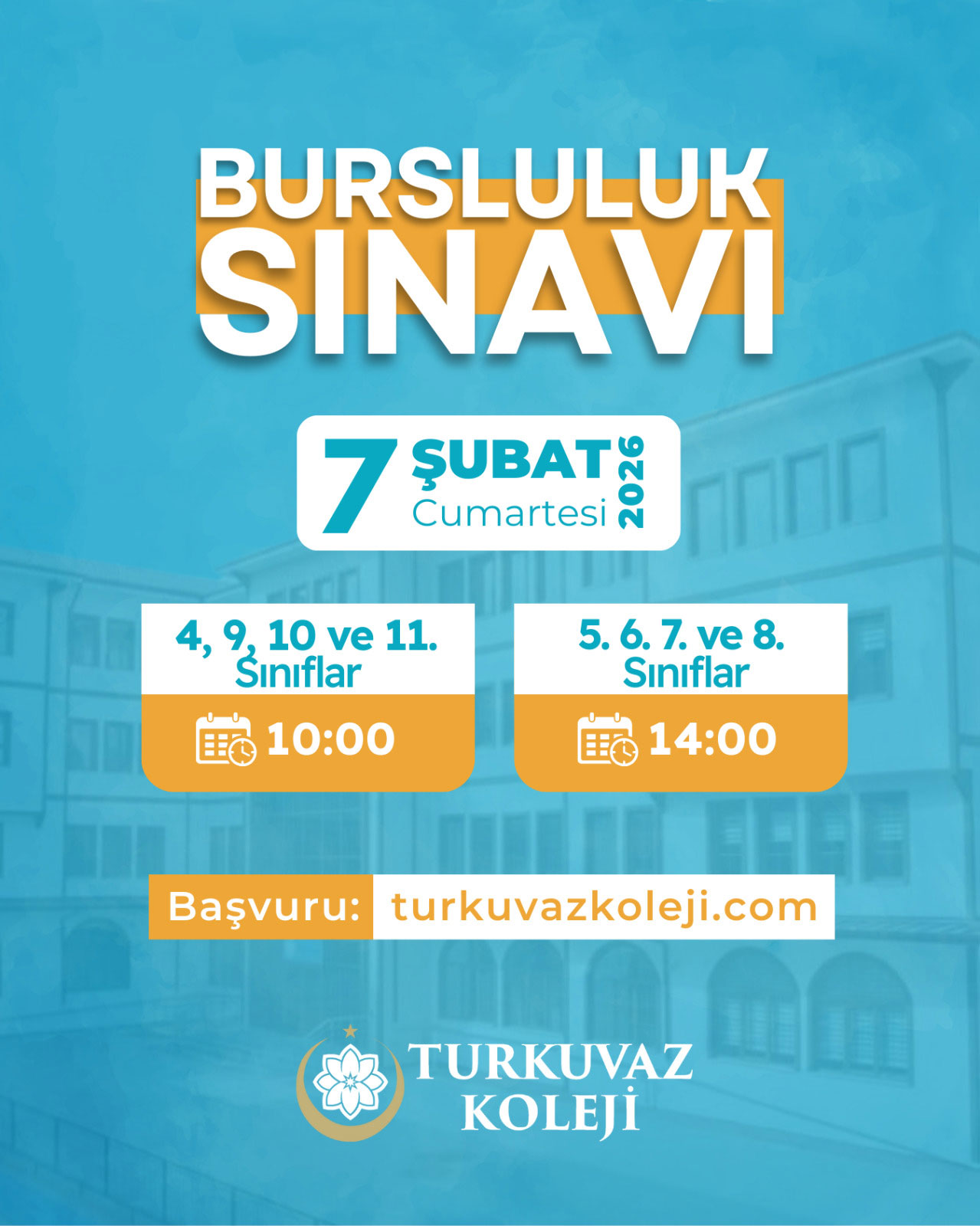 Sınava Girecek Sınıflar: 4,5,6,7,8,9,10,11. Sınıflar Sınav Tarihi: 7 Şubat 2026 Cumartesi Saati : 10:00 4,9,10,11. Sınıflar Saati : 14:00 5,6,7,8. Sınıflar